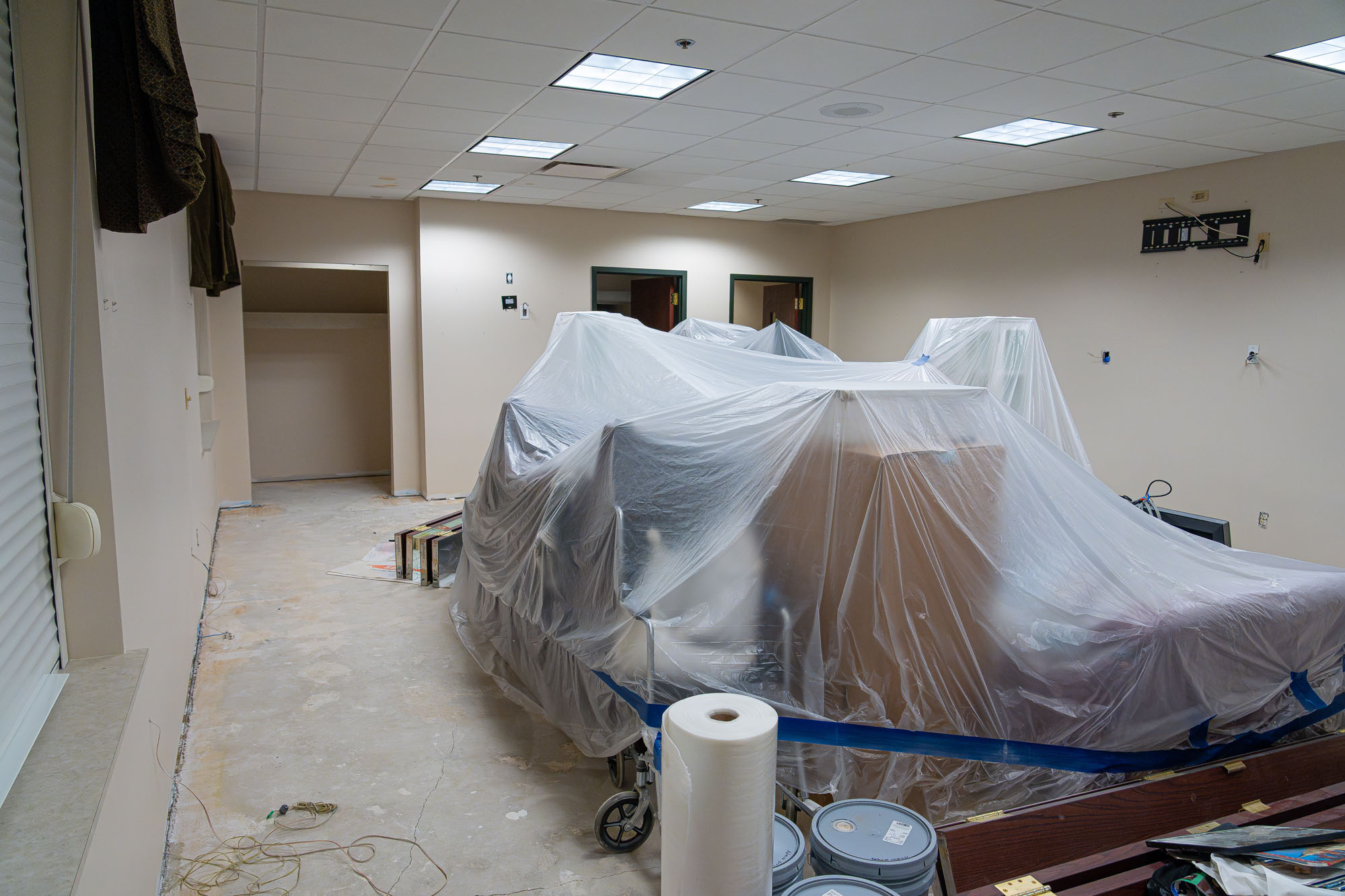 The toll on the church building was more apparent after it dried out. Repairs and renovations would be extensive—all the flooring and the lower half of the drywall needed to be completely stripped out. Ruined furniture and desks had to be discarded. Most significantly, the primary location for weekly worship services on the first floor was unusable.