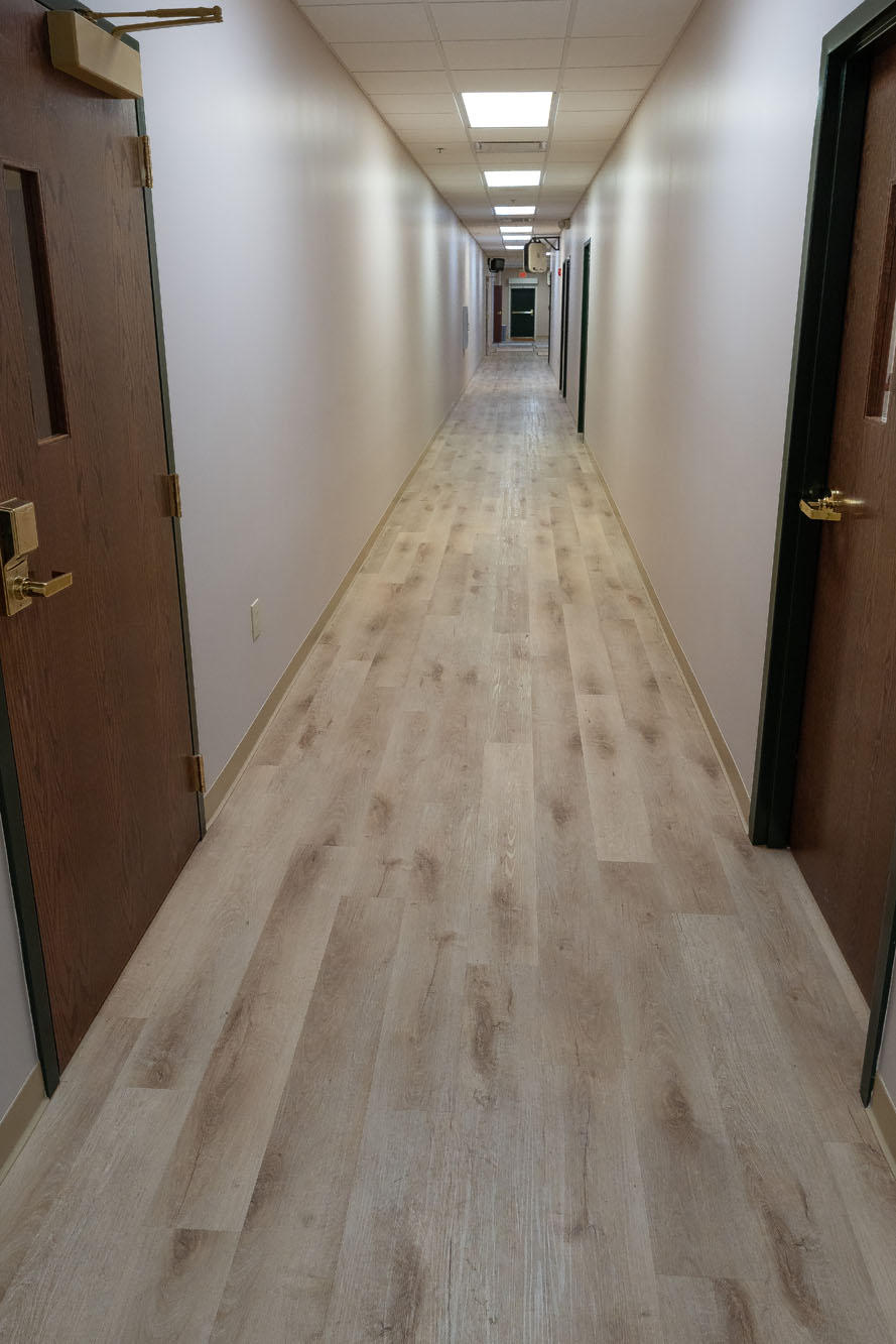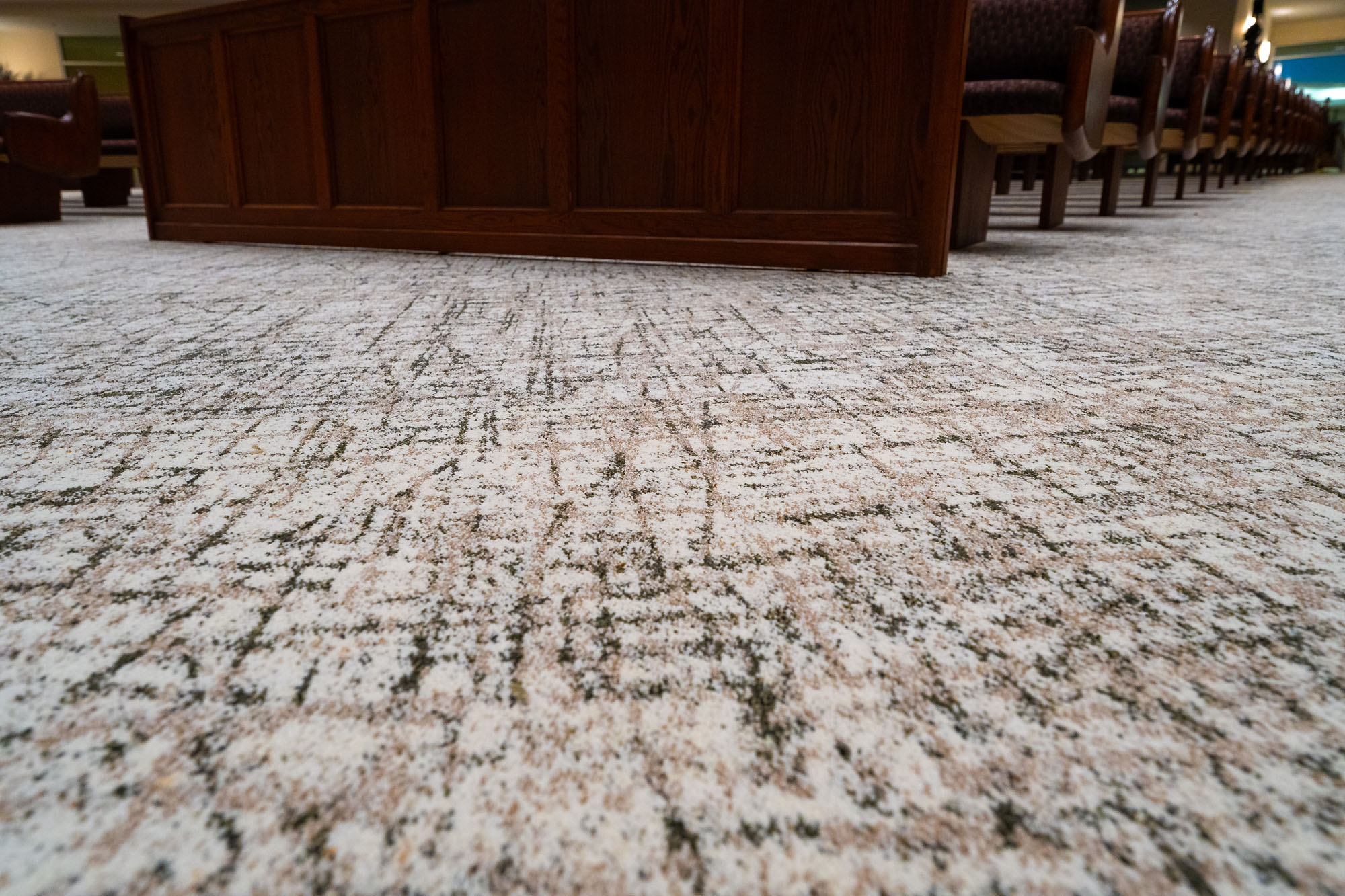 The carpeting in the offices was replaced with vinyl planking, but one of the bigger concerns for Bishop Haughton was finding a suitable replacement for the sanctuary carpet because the original was no longer manufactured. Many samples were presented, but there was a growing uncertainty that an acceptable option that suited the look, feel, and respect for the space was going to be found.